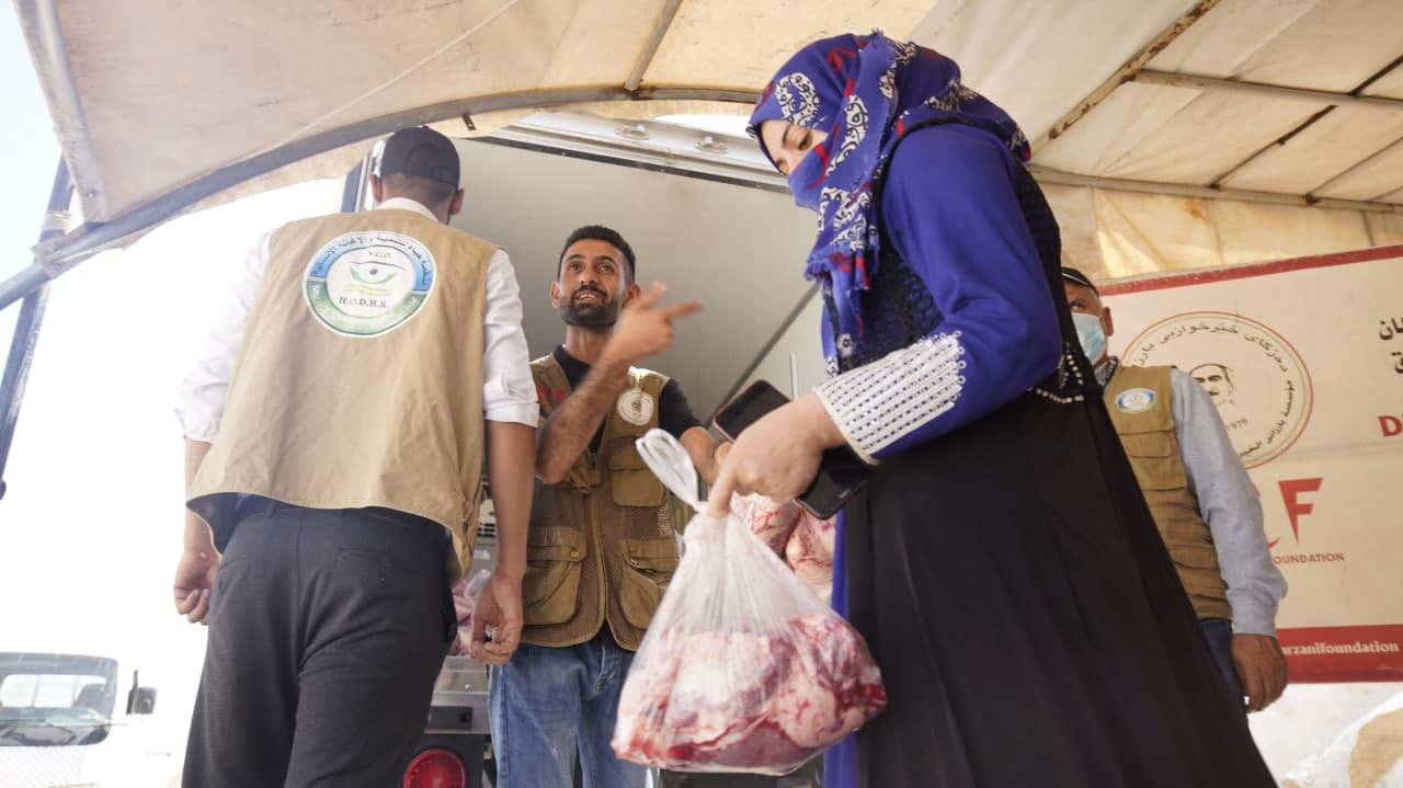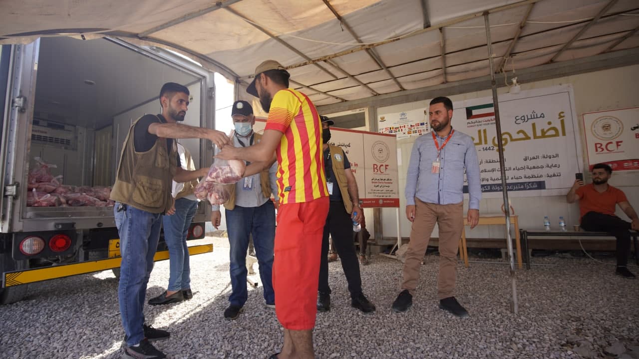 ضمن حملة الكويت بجانبكم قامت كوادر مؤسسة حباء بتنفيذ مشروع اضاحي العيد في اربيل الوجبة الثانية حيث تم توزيع اكثر من 260 حصة من اللحوم على النازحين في مخيم حسن شام