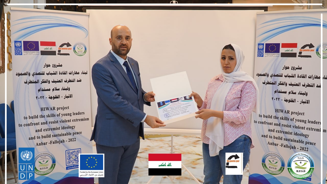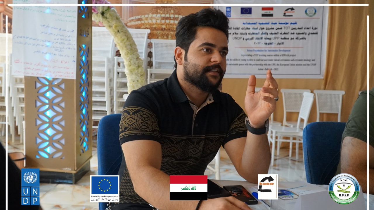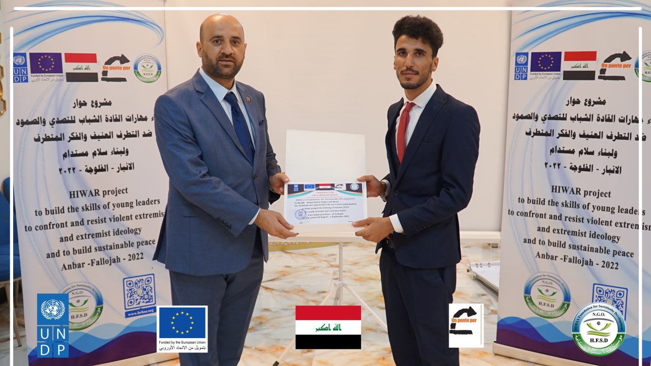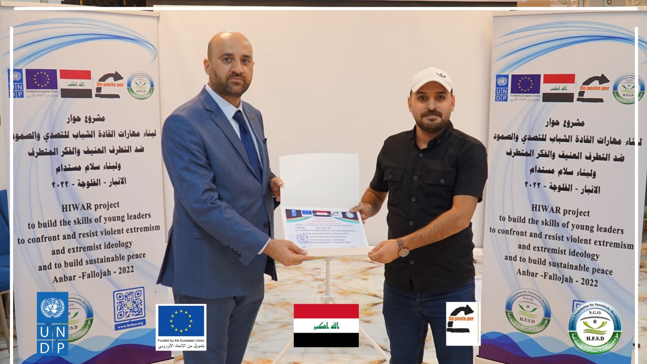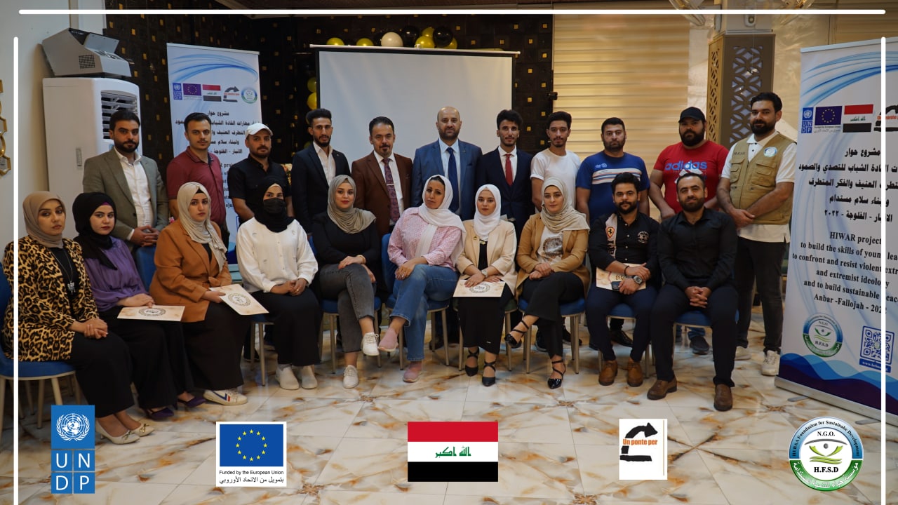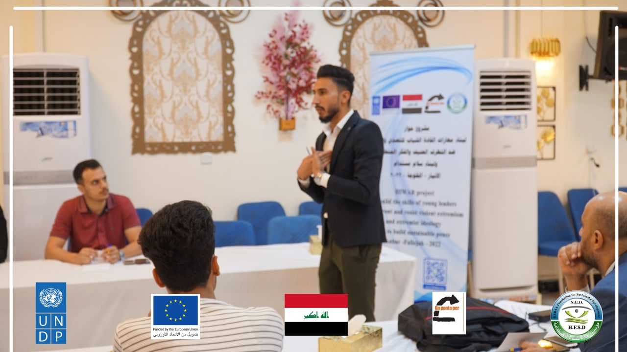 Today, Hebaa Foundation for Sustainable Development concluded a training workshop to prepare young leaders on skills to prevent violent extremism and hate speech within the project (Building Young Leaders Skills to Confront, Resilience, Prevent Violent Extremism and Extremist Thought and Build Sustainable Peace) Anbar Governorate – Fallujah District, which lasted for four days From August 29 to September 2, 2022