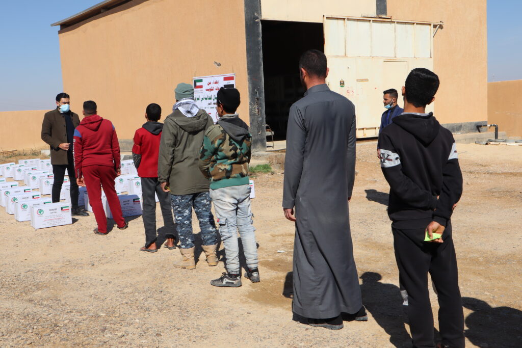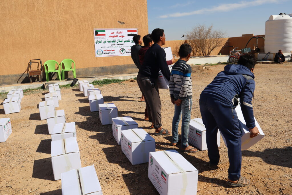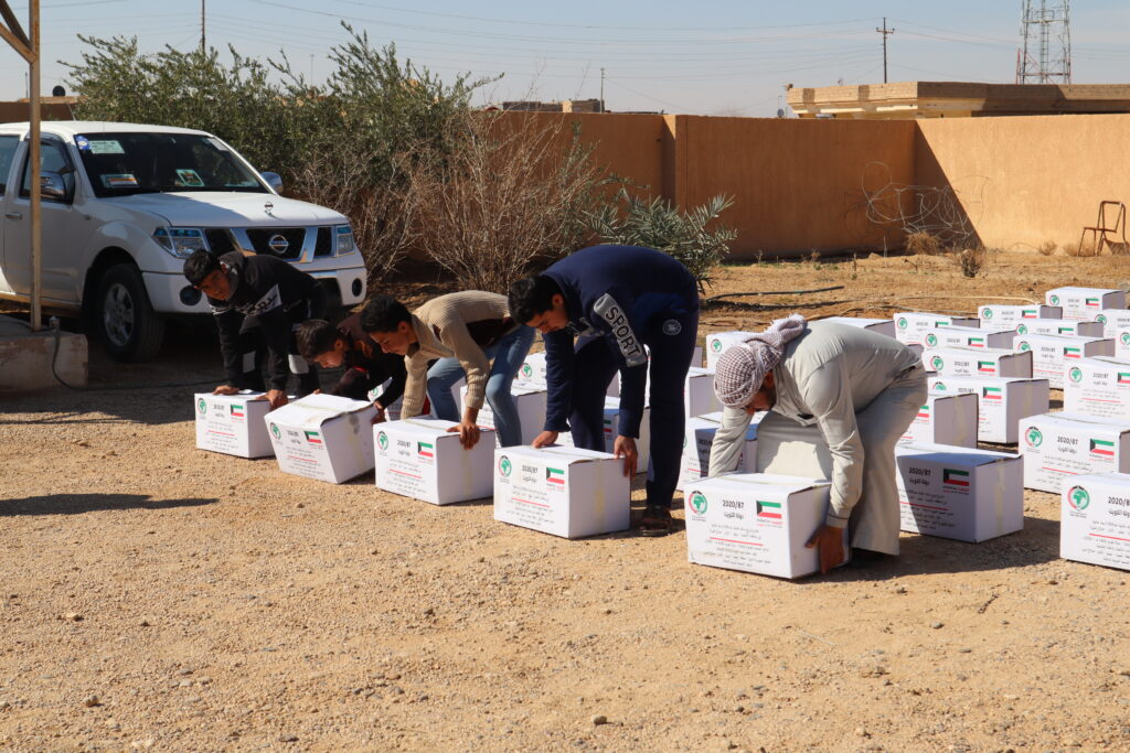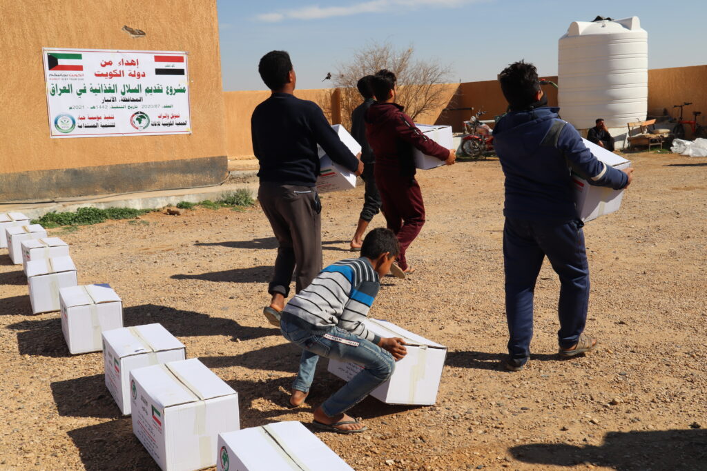 Where food baskets were distributed to the needy families, the missing persons, orphans and widows in the Tiwan area located within the Qaim district, far west of Iraq.